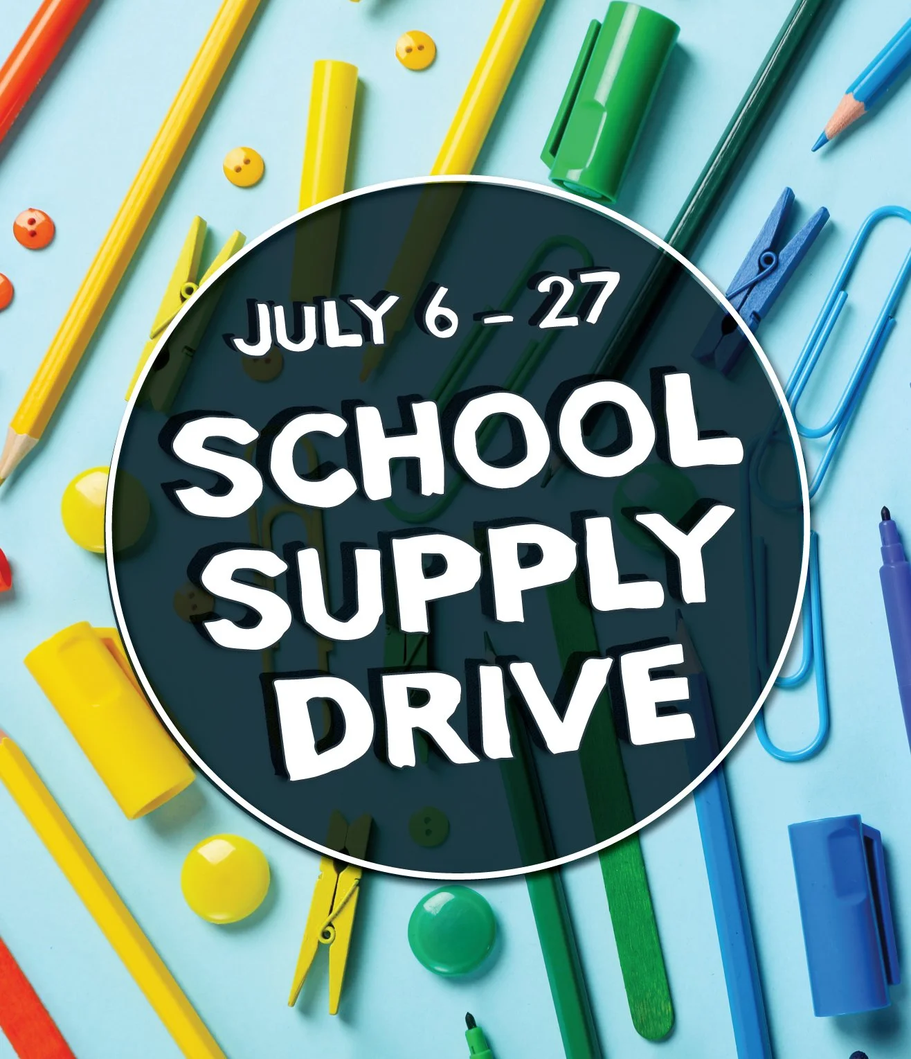 Join us this July as we rally together to support students in our community! We're collecting school supplies to help children start the school year equipped and confident. Whether it's backpacks, notebooks, pencils, or calculators—every donation makes a difference.